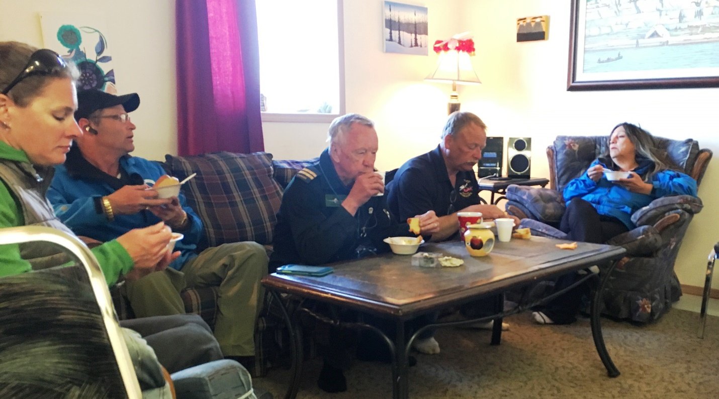 I woke up in the anticipation of a very cold water event (swimming in the Arctic ocean), and even right away put the bathing suit on under my flight suit. The weather decided for us differently though. The morning started with low overcast in Inuvik, and IFR ceilings and snow in Tuktoyaktuk.