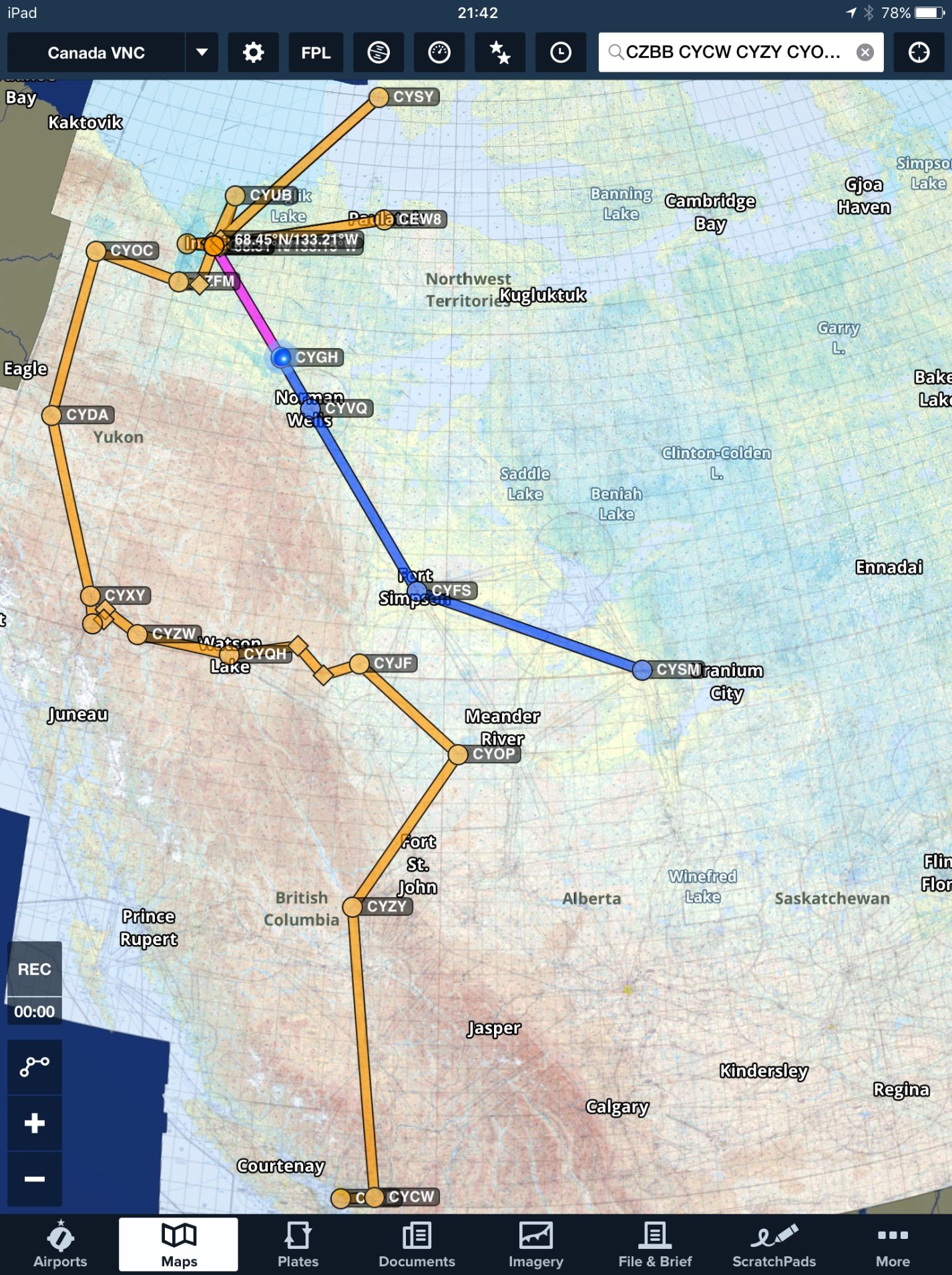 Ken Fowler with his Rocket and Jim Hrymack with his Harvard (longest range planes) headed off to Sachs Harbour for the airshow. The ice was just breaking off on the ocean, and the views could not get any more Northern!