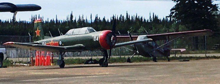 We have quite a big road map for today – half a dozen wheels-up airshows for communities around Yellowknife. Ken Fowler with the Rocket and Jim Hrymack with the Harvard faster and longer-range planes) take the Eastern route, Ross Granley with the Yak 155, Tanya with the Nanchang and myself with the citabria go North.