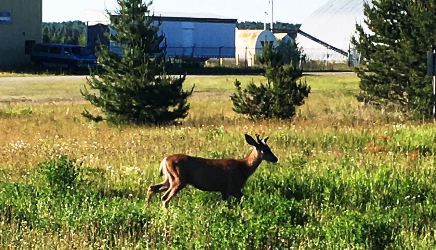Vicky from Trench Aviation Fuel was an angel. She drove back from the airport to the motel to pick me up, then made be toast and strawberry with cream for breakfast. On the way to the airport we met a local deer family, unafraid of people.